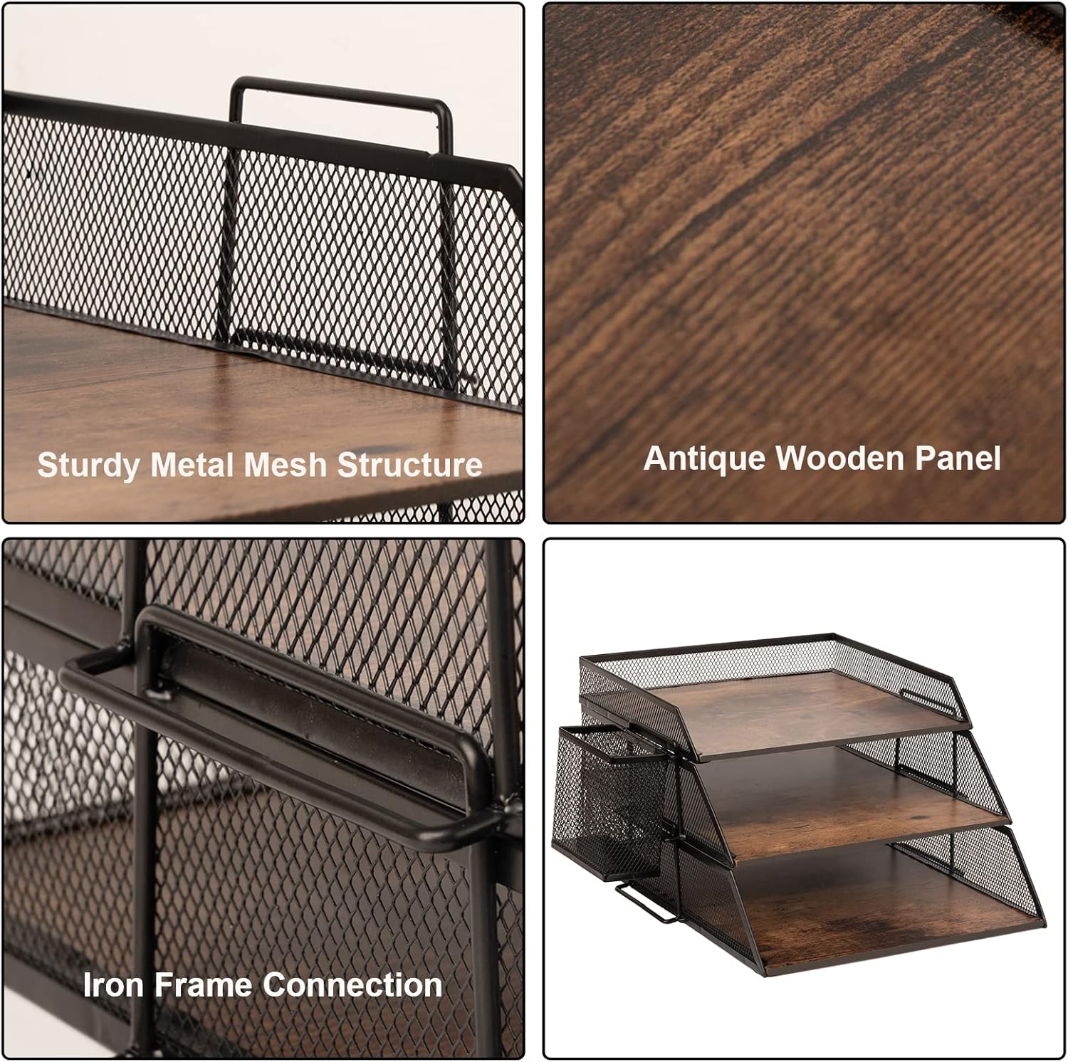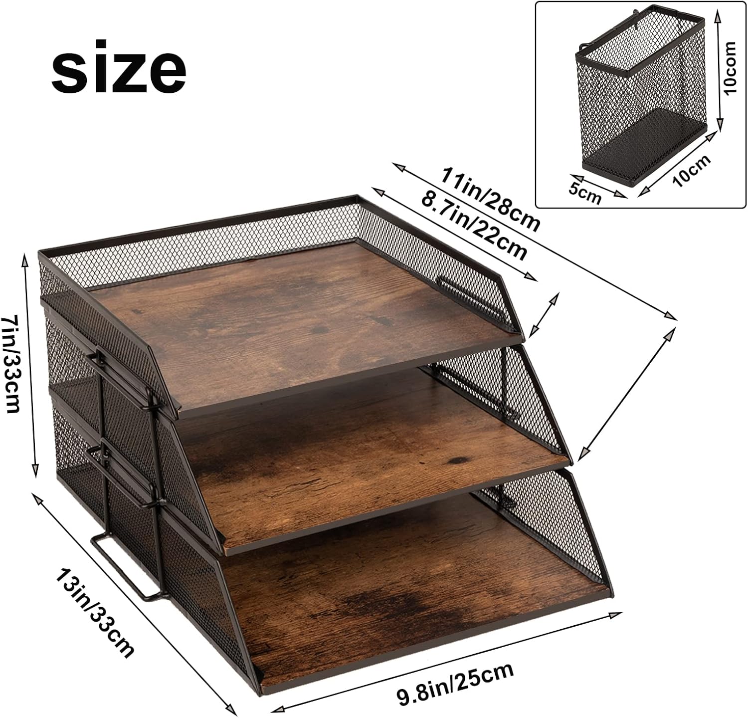 Made from high-quality wood and metal, this paper tray is designed to hold your files, magazines, and mail in a neat and orderly manner. The 3-layer design provides ample storage space while the included pen holder keeps your writing utensils within easy reach.